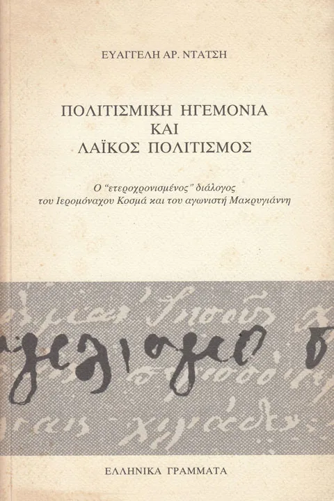 Στο βιβλίο Πολιτισμική ηγεμονία και λαϊκός πολιτισμός. Ο ετεροχρονισμένος διάλογος του Ιερομόναχου Κοσμά και του αγωνιστή Μακρυγιάννη της Ευαγγελής Ντάτση, με δείκτες τα ετερόγραφα κείμενα του Ιερομόναχου Κοσμά του Αιτωλού και τα αυτόγραφα του αγωνιστή Μακρυγιάννη, επιχειρείται η ανάδειξη του περιεχομένου, των πρακτικών και των μεθόδων, με τις οποίες ο επίσημος πολιτισμός επιδιώκει και επιβάλλει την πολιτισμική ηγεμονία του στα κατώτερα και εξαρτημένα κοινωνικά στρώματα. Ηγεμονία, η οποία με τη σειρά της, θα τα προετοιμάσει ιδεολογικά ώστε να συναινέσουν και να αποδεχθούν και τη συνακόλουθη οικονομική και πολιτική ηγεμονία των ανώτερων στρωμάτων.