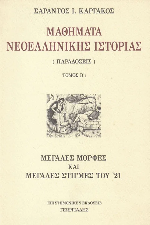 νά ἐμφανίζεται ἡ Ἑλληνική Ἐπανάσταση σαν “παραπούλι” τῆς Γαλλικῆς. Καί ἀκόμη ὅτι ἀποκτήσαμε συνείδηση -καί μάλιστα ψευδή συνείδηση Ἕλληνος- μετά τόν Διαφωτισμό. Τό βιβλίο αὐτό δέν ἐξετάζει καταλεπτῶς τό μεγάλο ἐκεῖνο γεγονός. Περιορίζεται αὐστηρῶς σέ ὅ,τι λέγει ὁ τίτλος: Μεγάλες μορφές καί μεγάλες στιγμές τοῦ ’21… [Σαράντος Καργάκος]
